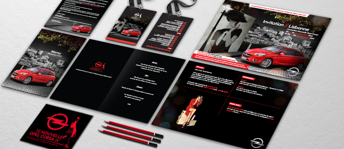 Création de l'identité visuelle et des supports pour l'évènement "Nouvelle Corsa" pour OPEL.